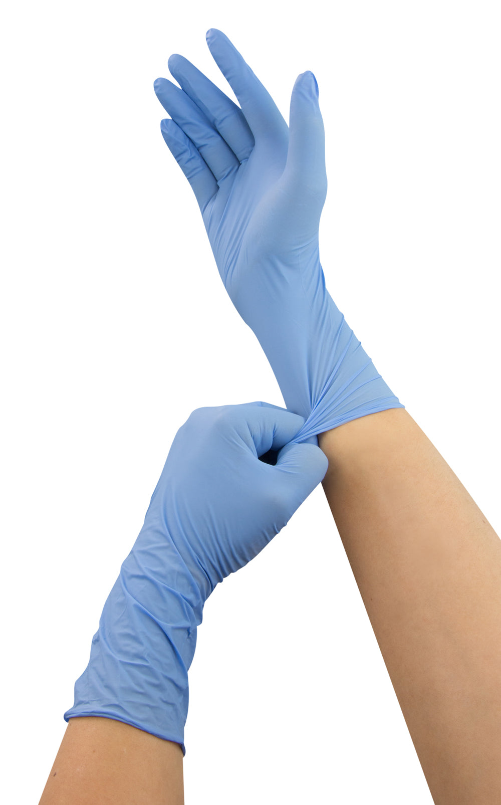 Kvalitet engangshandsker til undersøgelse og beskyttelse, fremstillet af blå eller violetblå nitril, pudder- og latexfri, med perlemanchetter. Handskerne er beregnet til at bidrage til at forhindre krydskontaminering i forbindelse med medicinske undersøgelser og diagnostiske/terapeutiske procedurer udført under ikke-sterile forhold og beskytte brugerne mod stoffer og blandinger, der er sundhedsskadelige, og skadelige biologiske agenser, der kan forårsage meget alvorlige konsekvenser eller uoprettelige helbredsskader.